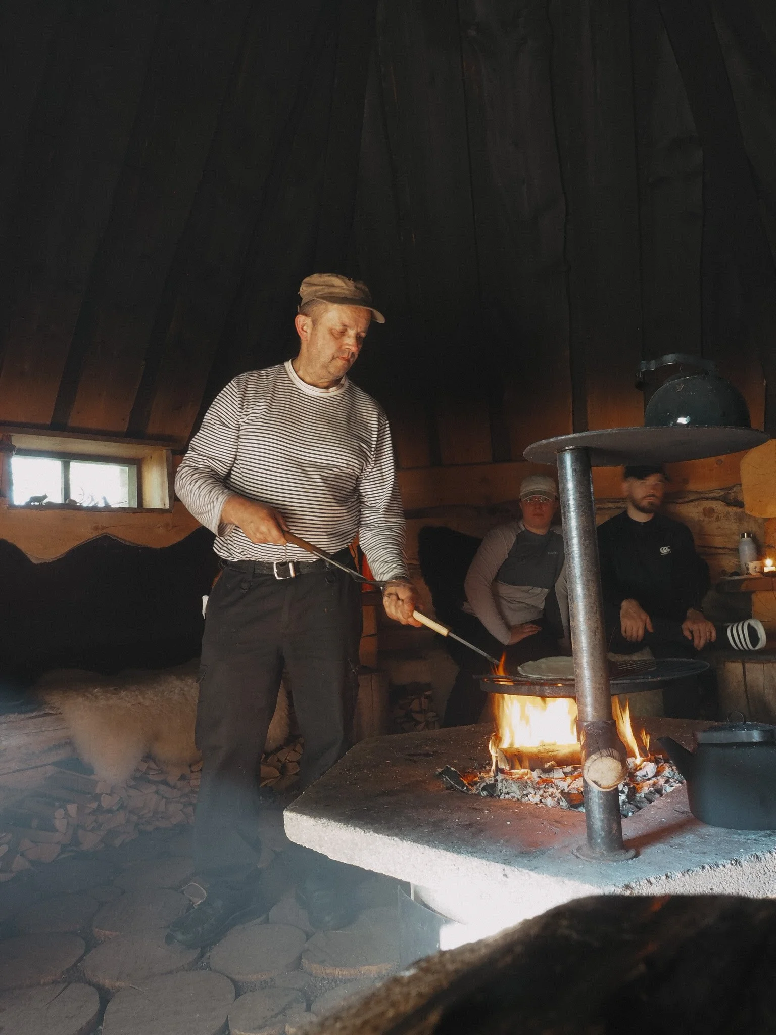 Tilaa 9–12 hengelle rauhalliseen yhdessäoloon.Avotuli, jyhkeät hirret ja pehmeät taljat tekevät kodasta lämpimän ja kutsuvan paikan.